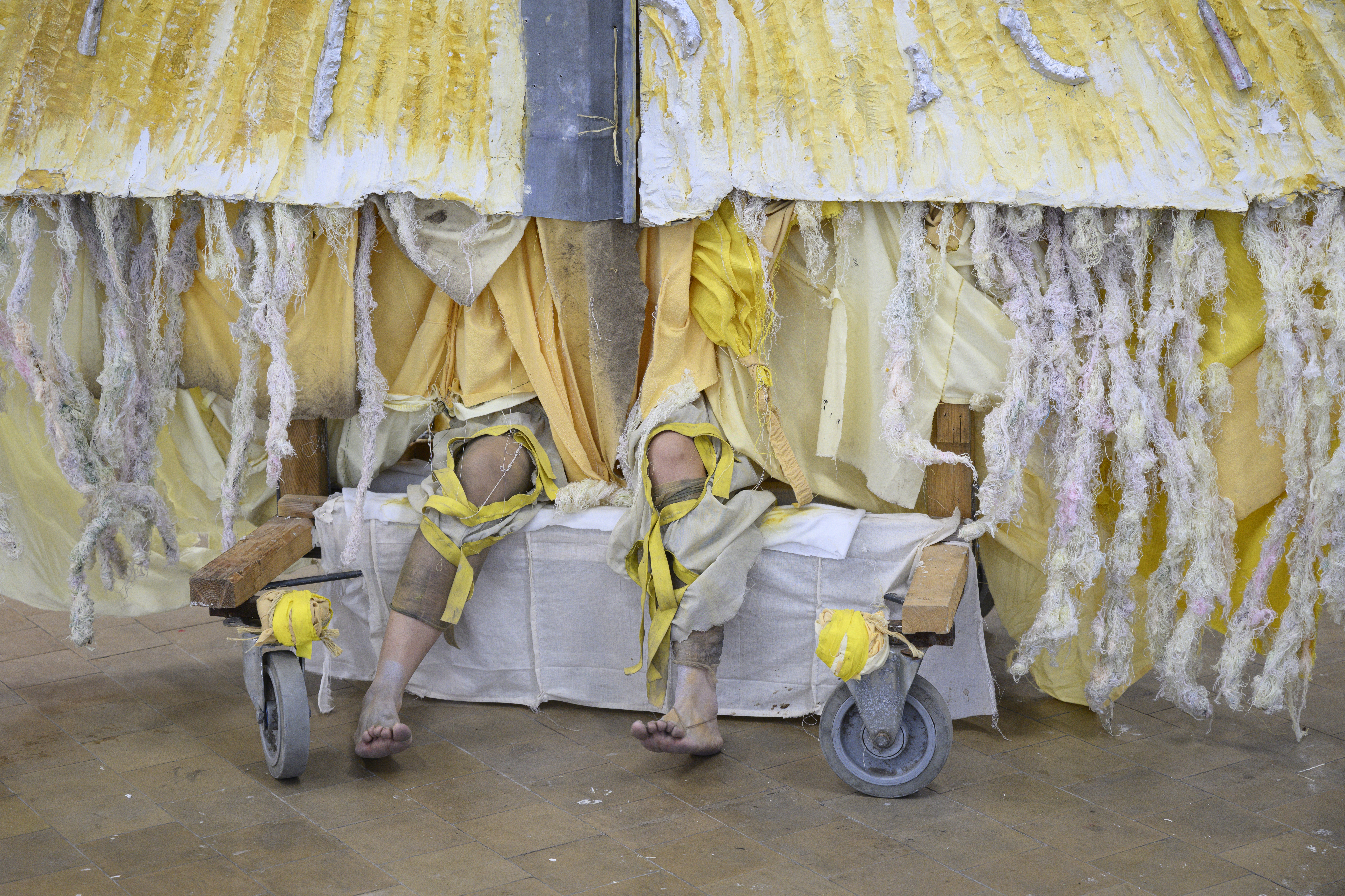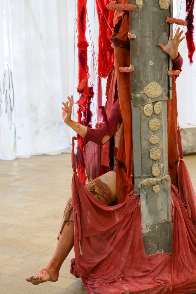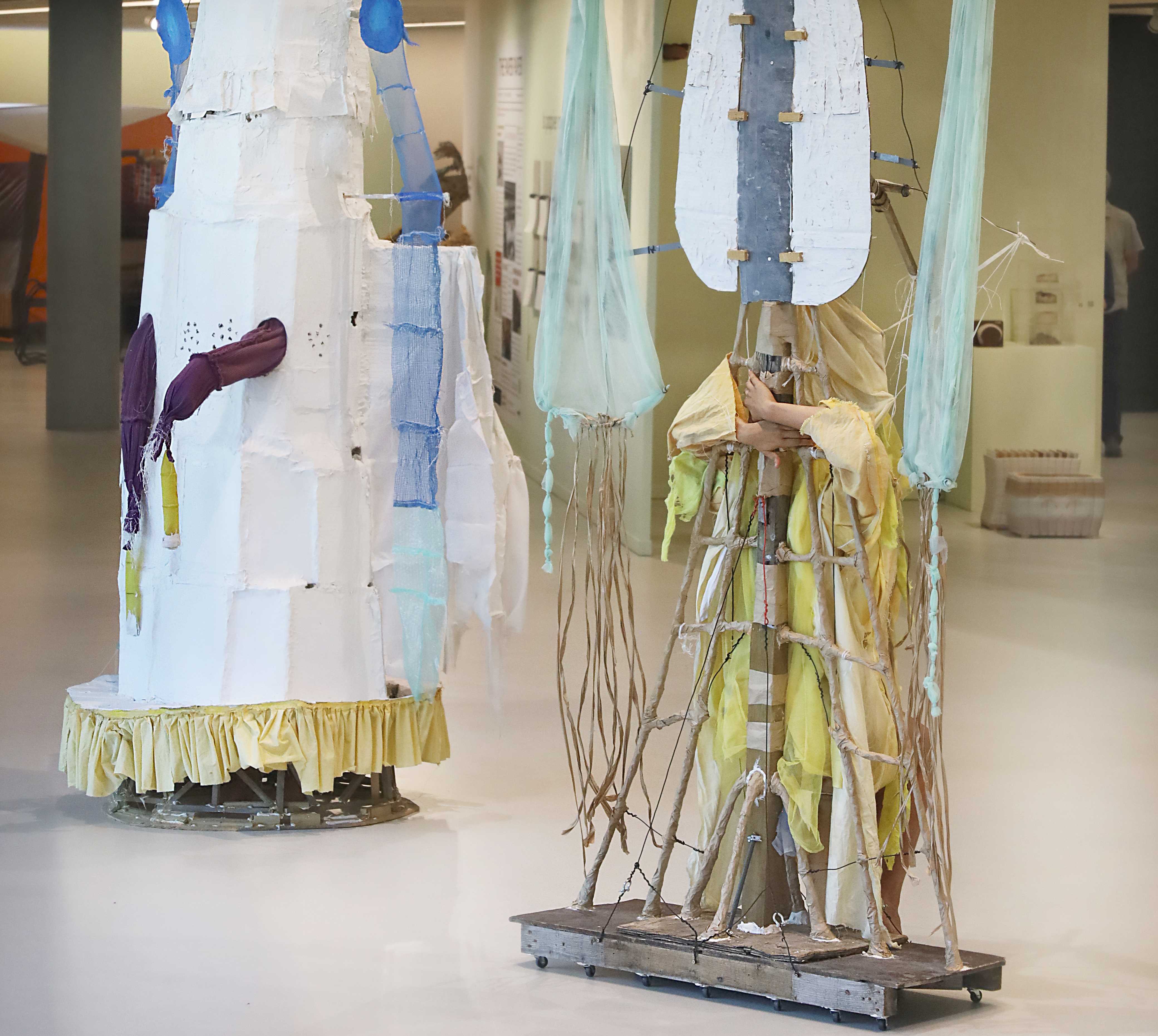 These performances are characterized by slow, repetitive movements, with the “hybrid entities” carefully sensing their environment. The interplay between the sculptures and the performers’ outstretched arms and legs evokes everyday behaviors, emotions, rituals, and interactions. Each sculpture assumes its own role, defined by its specific possibilities and limitations.