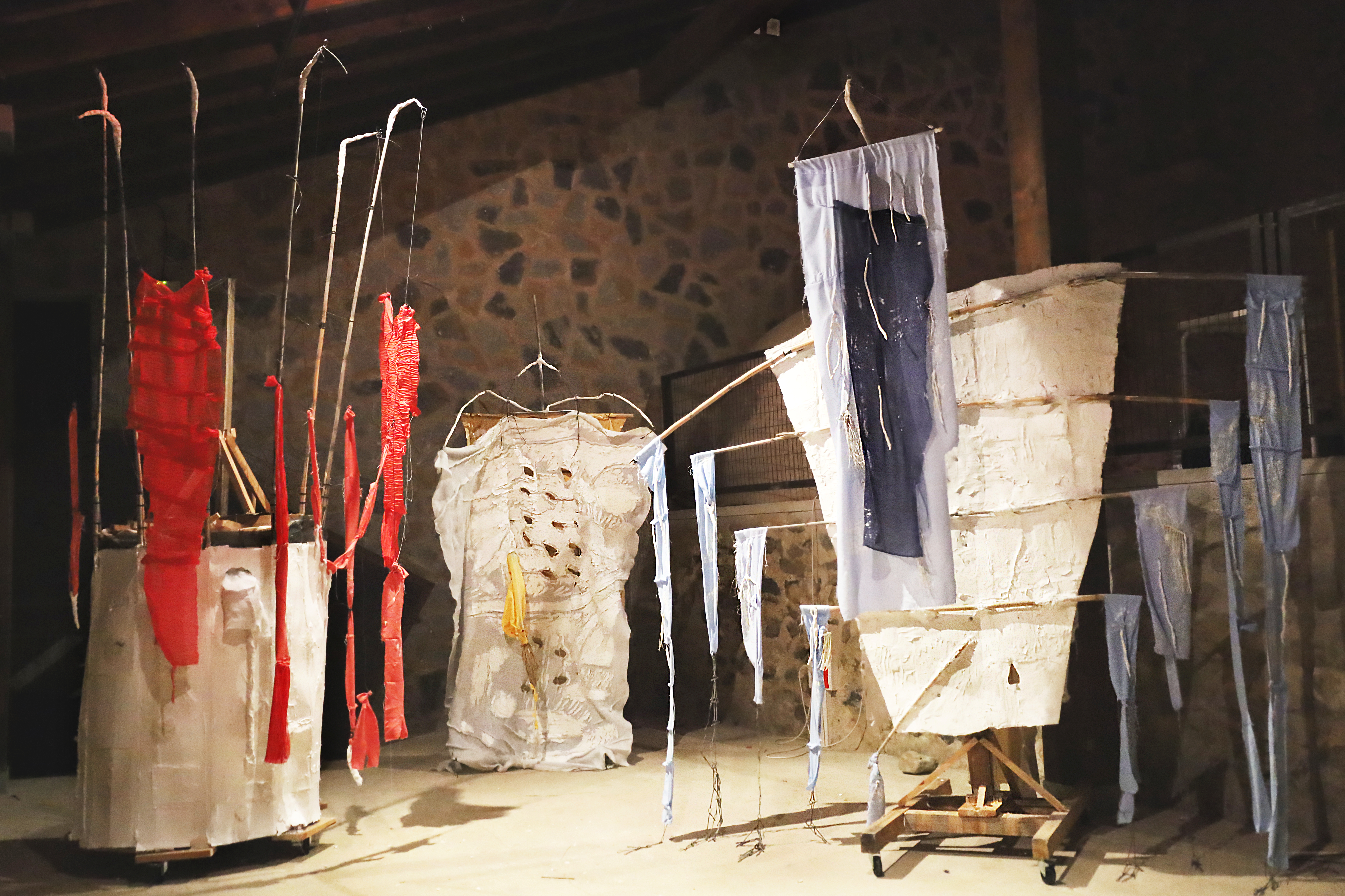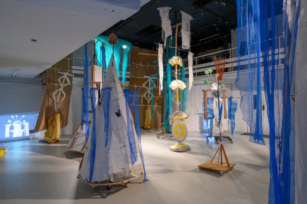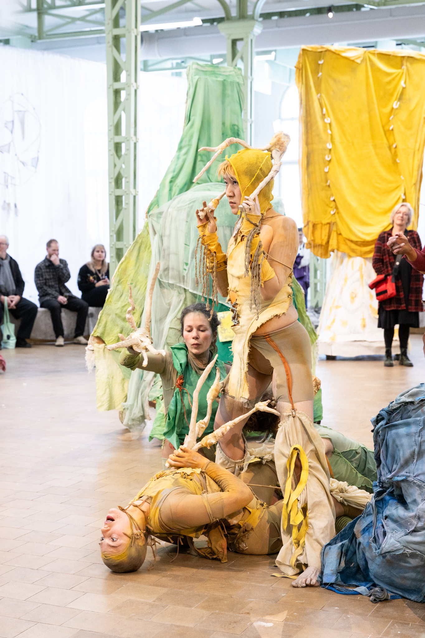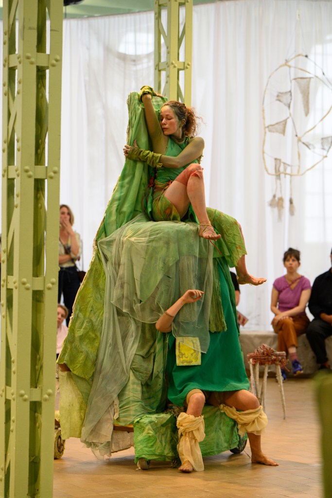 These performances are characterized by slow, repetitive movements, with the “hybrid entities” carefully sensing their environment. The interplay between the sculptures and the performers’ outstretched arms and legs evokes everyday behaviors, emotions, rituals, and interactions. Each sculpture assumes its own role, defined by its specific possibilities and limitations.