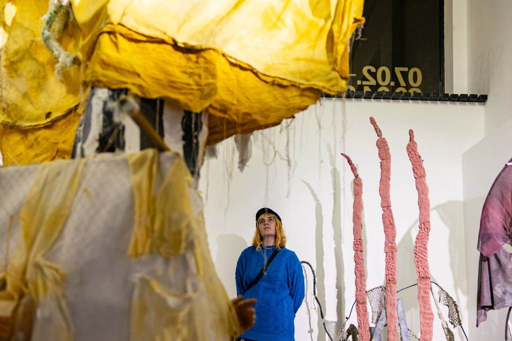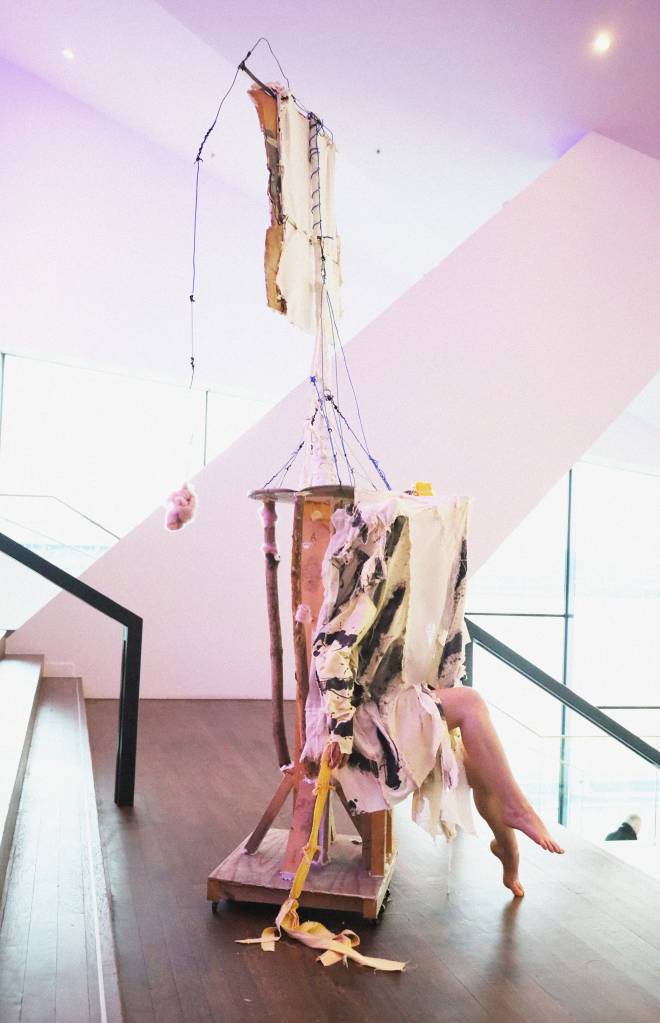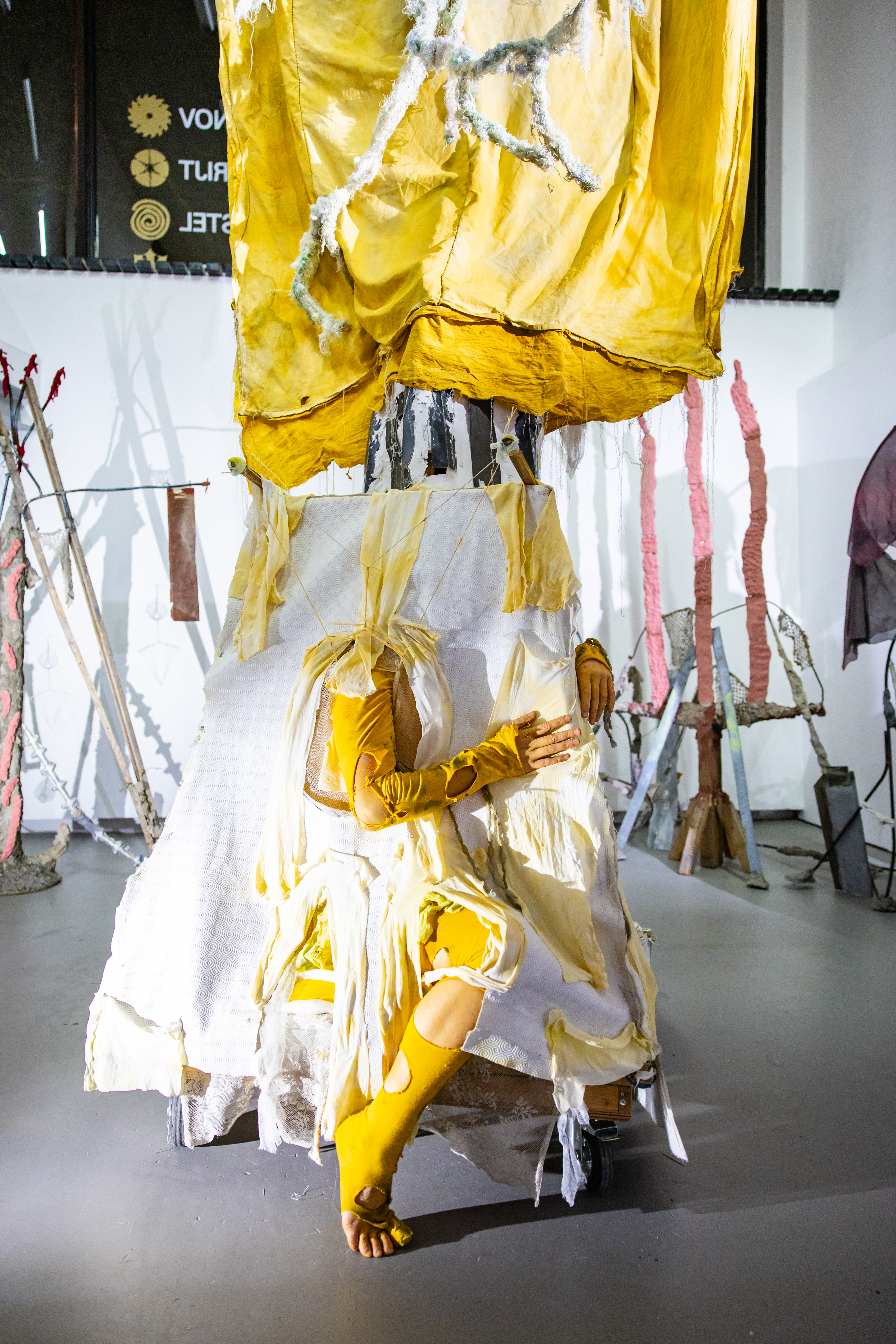 Wessel Verrijt (1992, Lierop NL, currently based in The Hague, NL) explores in his work the boundary between the “living” and the “non-living,” seeking to soften this often rigid divide and create new connections between the two. By combining sculptural work with performance, Verrijt create “hybrid entities” where performers and sculptures merge, transforming static materials into active participants.